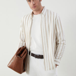 Regular Fit Long Sleeve Striped Poplin Men’s Shirt