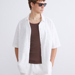 Relaxed Fit Short Sleeve Linen-Look Men’s Shirt
